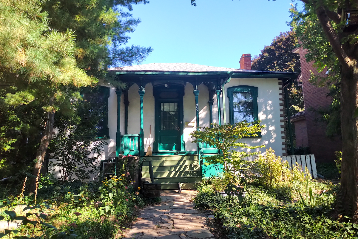 Quite possibly, this is the oldest house in Toronto still in use as a family home, as the garbage bins and broom suggest in the photo.