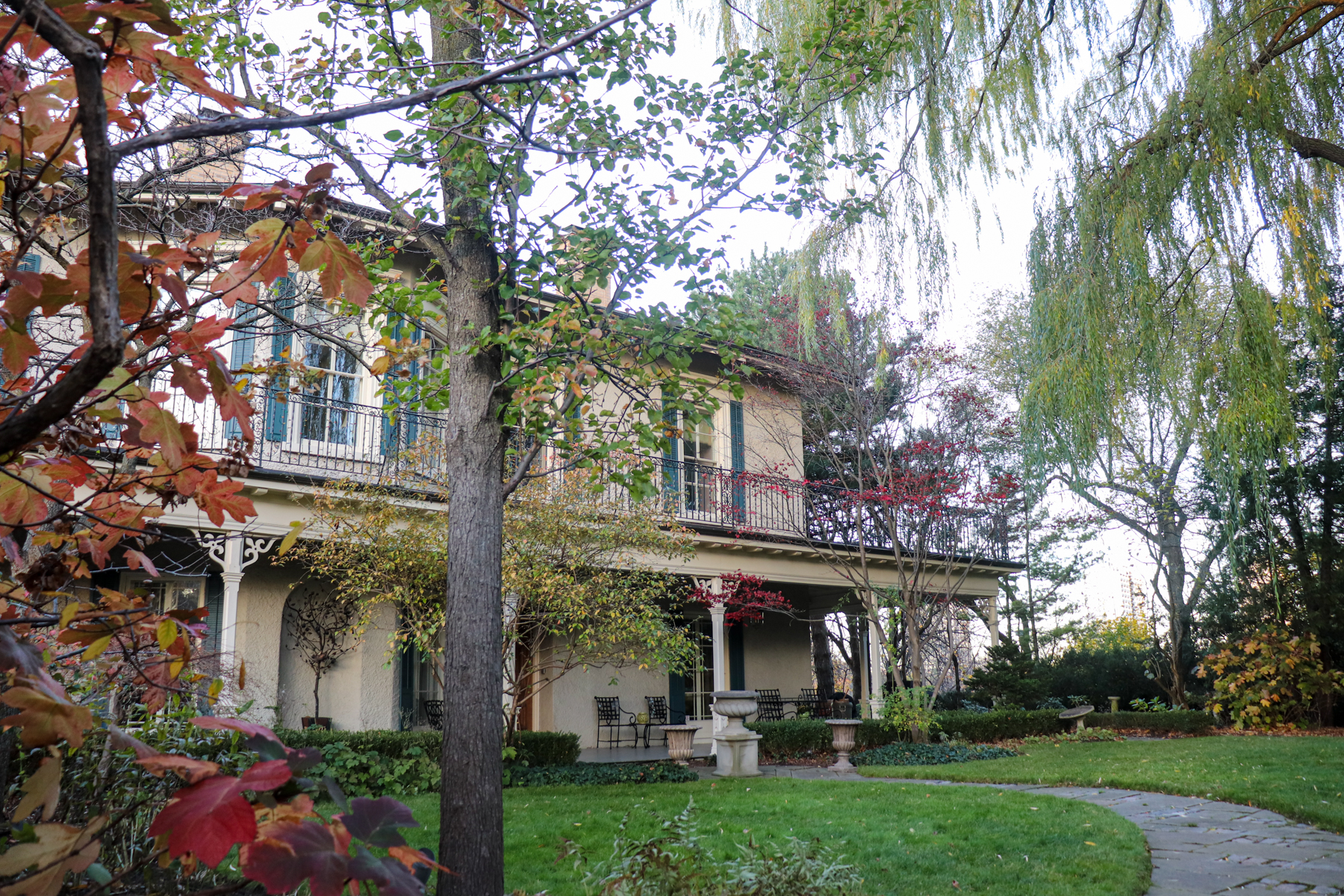 As the name suggests, the Italianate style is inspired by a European Italian villa. Although an Italianate villa follows the center-hall floor plan of a Georgian house, their facades and roof lines tend to be irregular with tall and narrow windows and a 2nd floor balcony.
