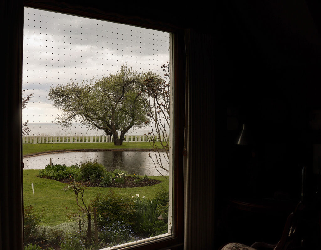 It has the essential elements of a “house” and two art studios, one for herself, and the other for a custodial tenant, usually a visiting artist. The living room features a large picture window, with a panoramic view overlooking the 250 ft. meadow and Lake Ontario