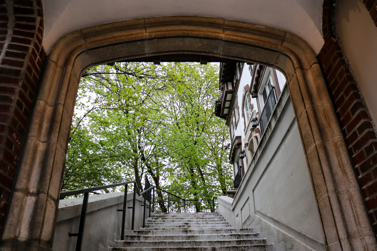 The arch, staircase and ravine together act as a natural sound barrier, dampening unwanted noise. As residents close and open the door, instead of cars (or rather horse galloping in 1920’s), it is the singing and chirping of birds that enters the building.