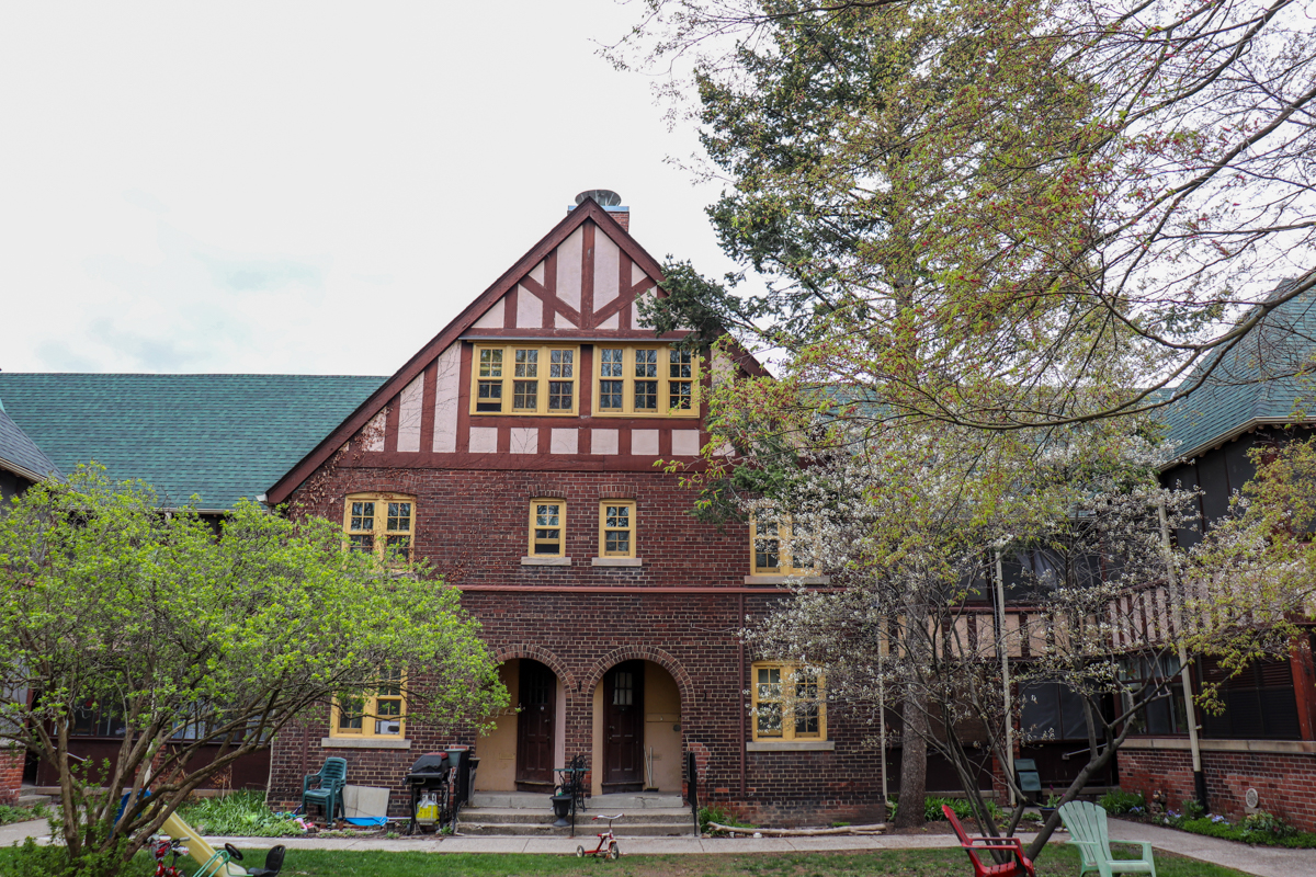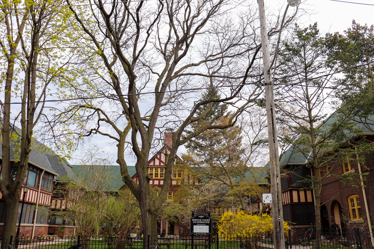 Nestled amongst the Victorian row houses in Cabbagetown, this Tudor revival housing compound stands out with its disproportionately large courtyard for the neighborhood.
