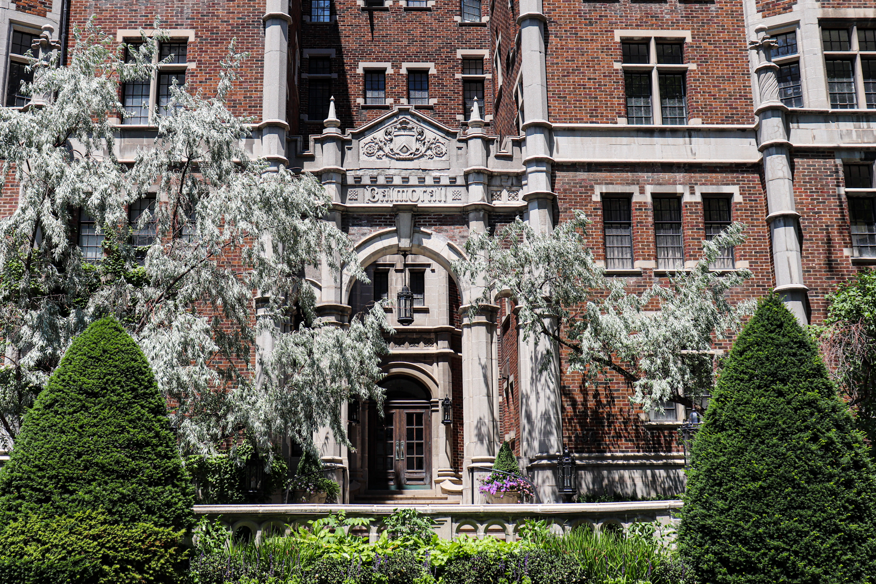 What a grand entrance The Balmoral has. The two-storey white stone arch meets a Tudor like carved gable in the middle. A pendant lantern greets visitors to the H-shaped courtyard, accompanied by a circular driveway wrapped around with stone baluster.